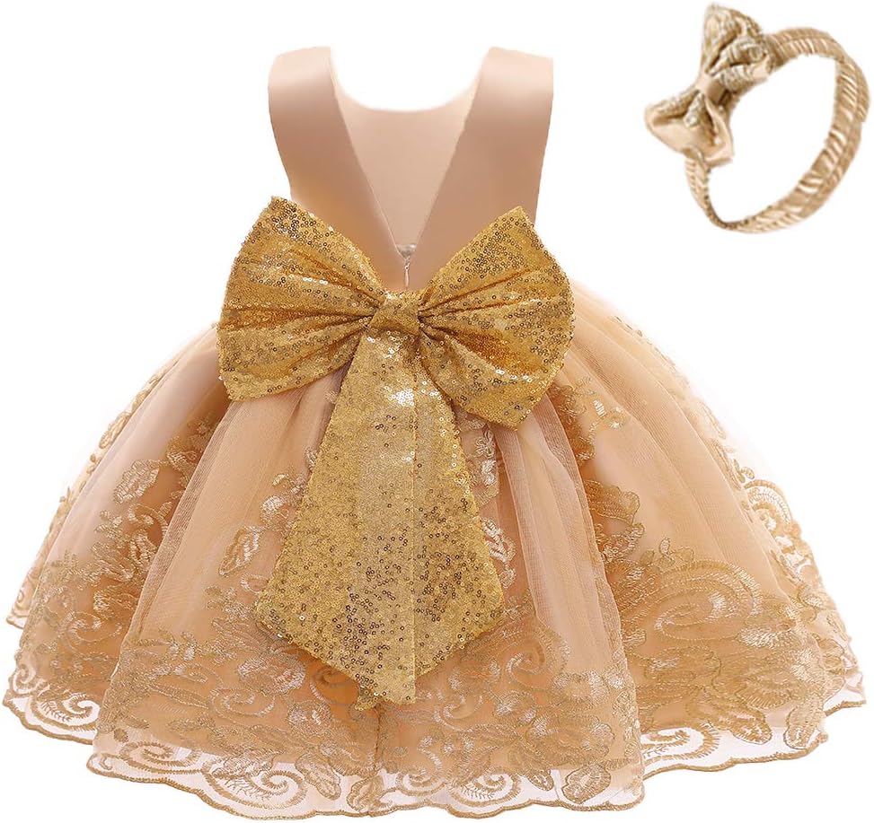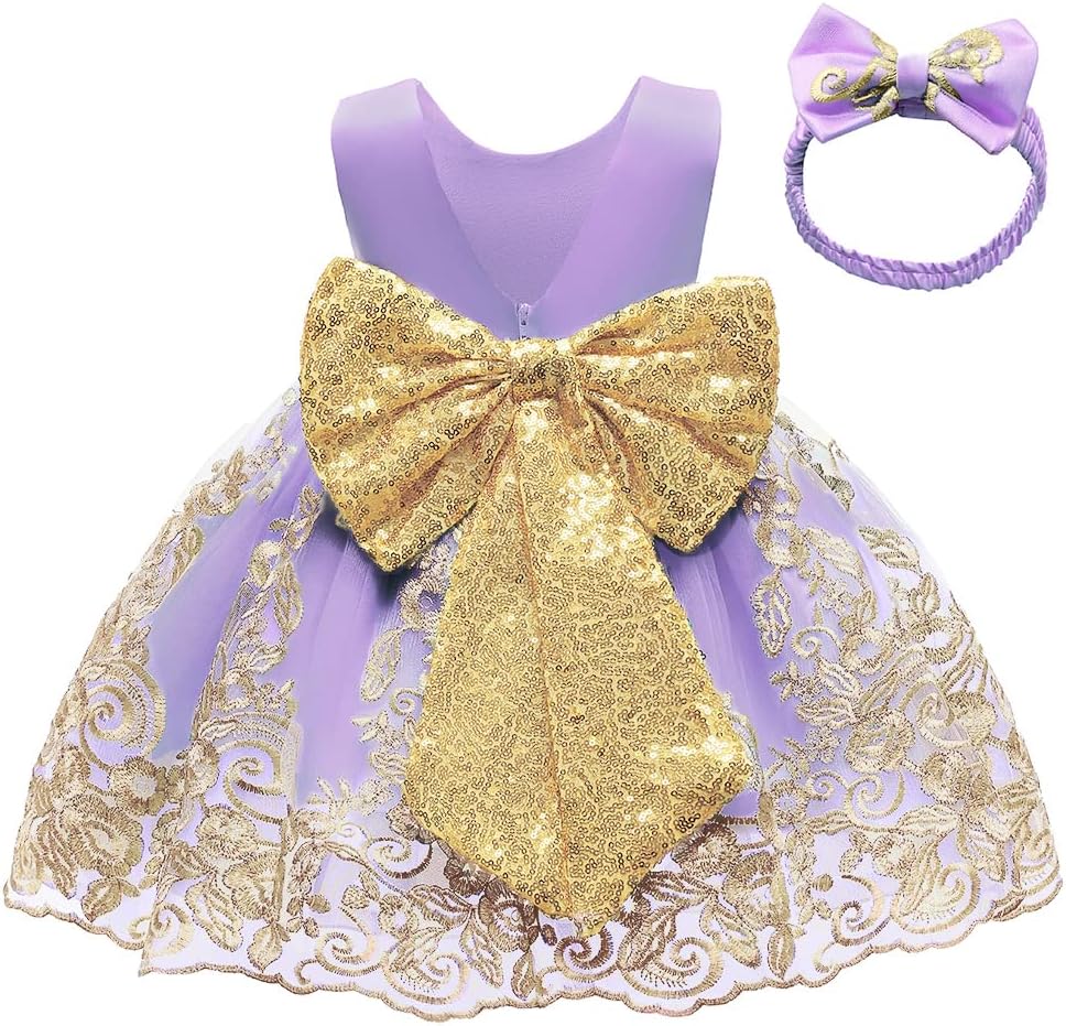 Each dress features a lovely detachable large bow and a cute head accessory, adding a charming touch to every outfit. Whether it's for a wedding, baptism, or birthday celebration, this dress is sure to make your little one shine at every event.