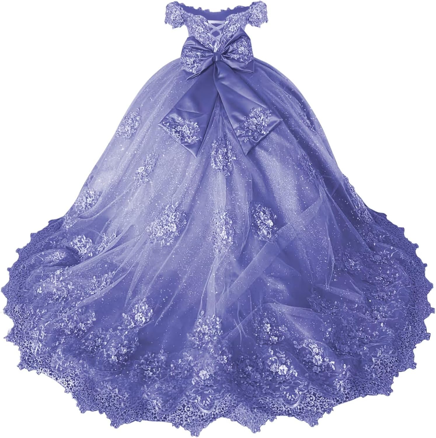 Design:This princess off shoulder flower girl dress for wedding;beaded 3D flower first communion dress;sequin lace applique ball gown dresses for girls;crystal pageant dress for girls with bow;lovely vestidos para niñas elegantes Features:3D flower;off shoulder;lace applique;crystal;beading;with bow;sequin;glitter;with train;floor length;puffy style Occasions:This gorgeous girl tulle dress can suitable for wedding flower girl dress;first communion dress;dancing party;holiday;birthday;prom ball gowns;pageant;bridesmaid gowns and other special formal occasions for your child Garment Care:Dry clean only for this shiny flower girl dress for wedding;please separately wash with other clothes Size:Please carefully read our size chart before place this luxurious pageant dress for girls