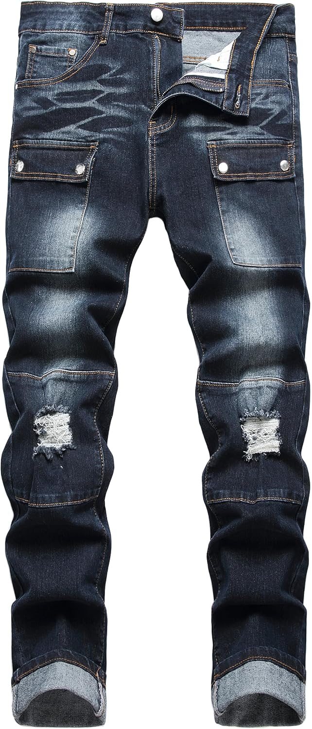 Explore the versatility and trendiness of our Men's Slim Fit Stretch Jeans Ripped Skinny today and redefine your casual style!