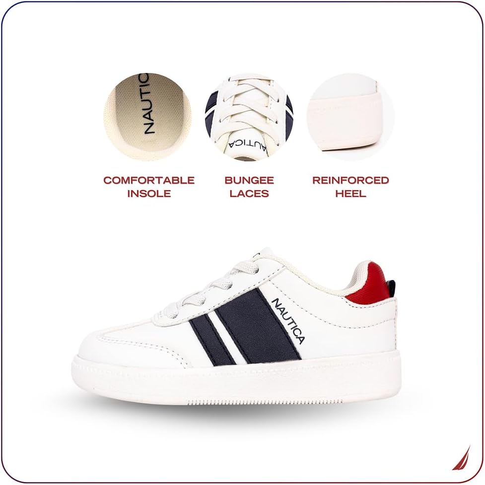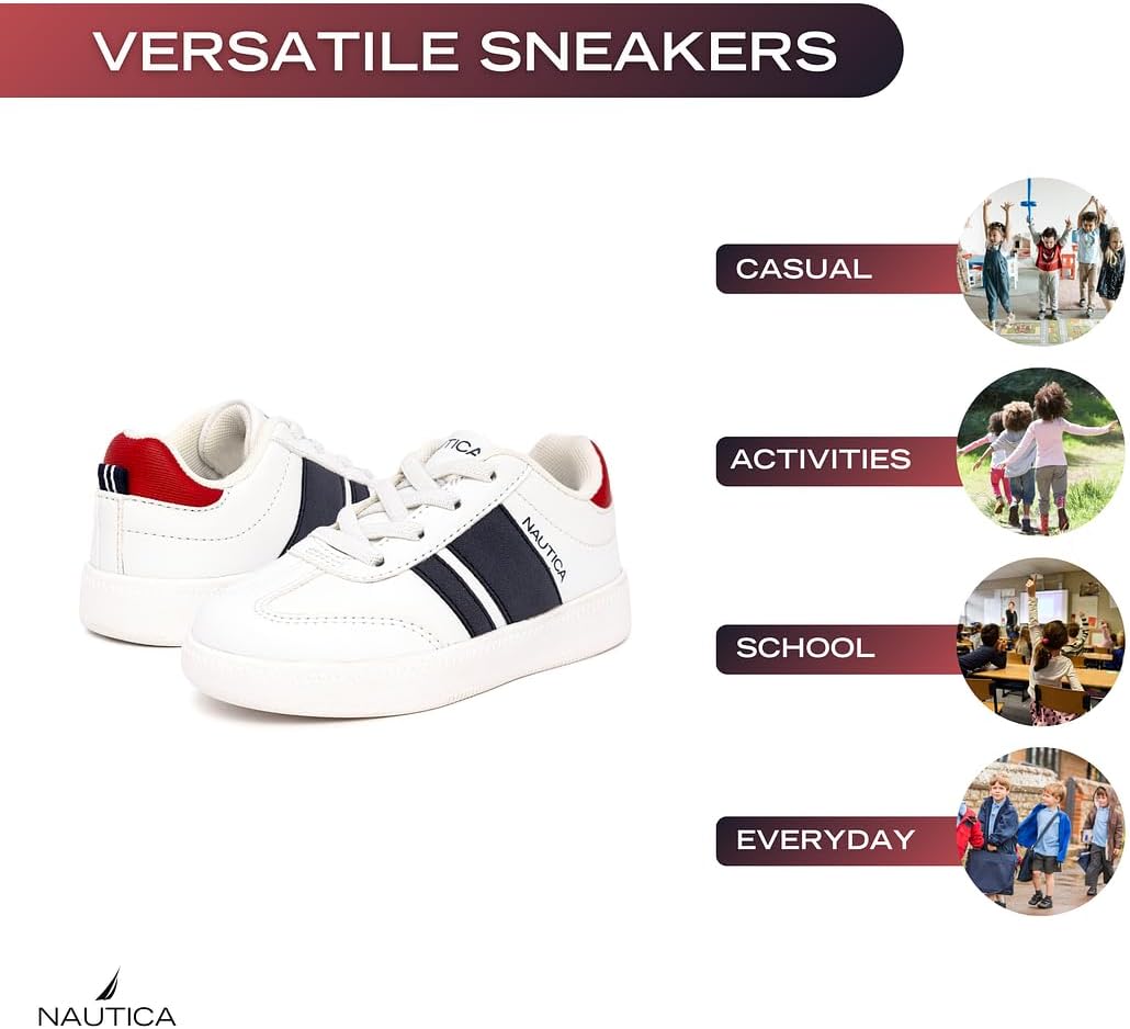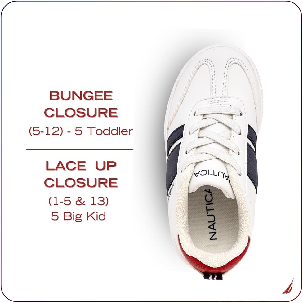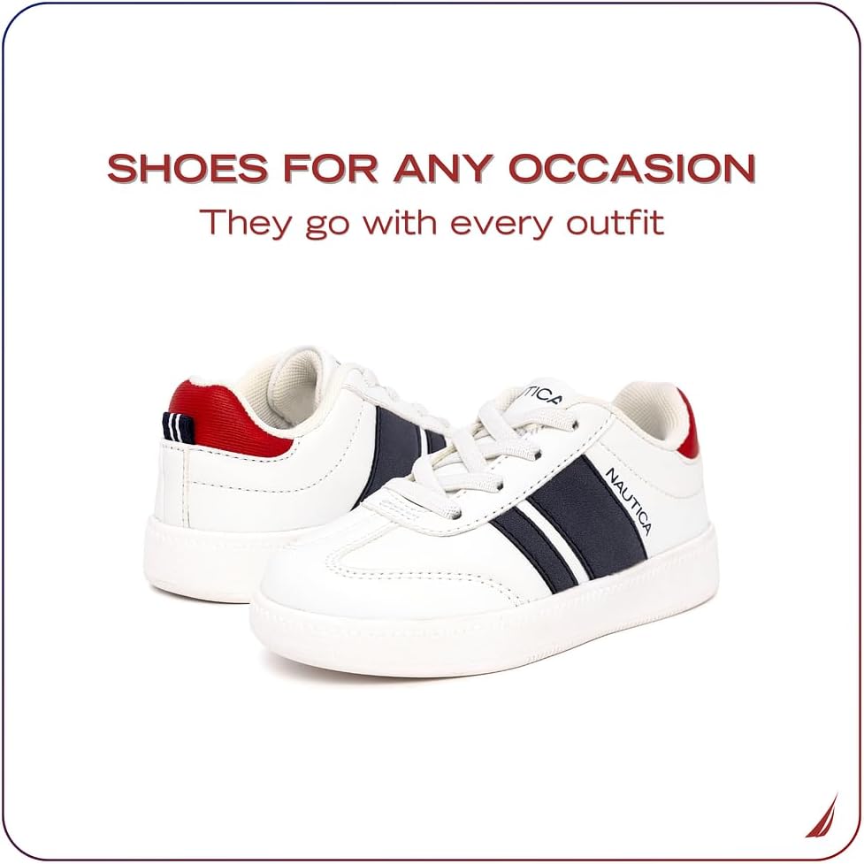 Nautica Boys Girls Casual Fashion Shoes combine comfort and versatility, ideal for soccer, walking, and tennis. Designed with breathable materials, these sneakers keep feet cool and dry, while their lightweight and flexible construction ensures natural movement. Available in both lace-up and bungee styles, as well as low-top and high-top options, they provide a secure fit tailored to active kids’ needs. Perfect for everyday wear, these shoes support healthy foot development without compromising on style or performance.