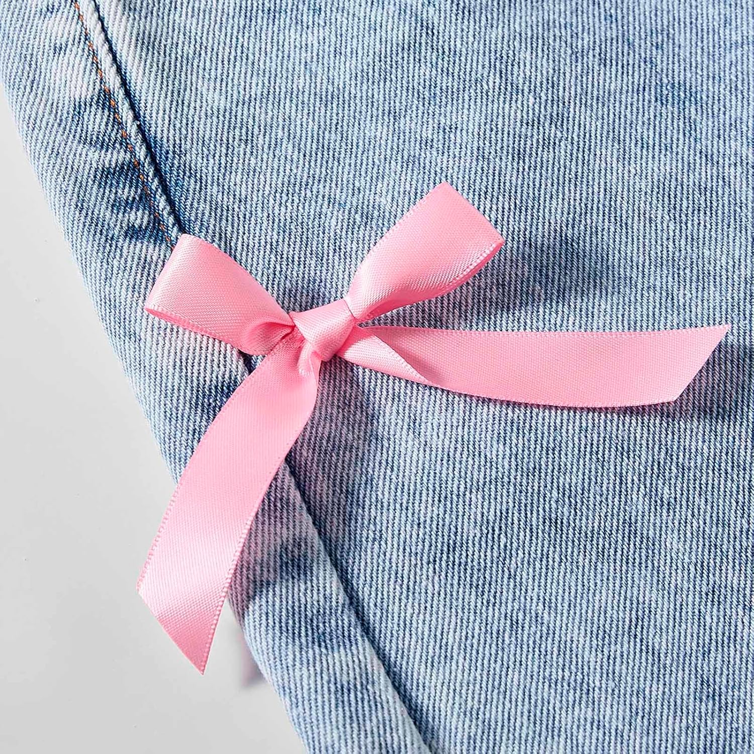 Made from premium quality denim, these stylish kids denim pants are both breathable and durable. The trendy bow pants design at the waist creates a chic look that pairs effortlessly with t-shirts, blouses, or jackets. Moreover, the high-waist bow jeans style ensures a flattering fit while offering extra comfort during movement. Parents love them because they combine durable denim for girls with the elegance of modern kidswear.