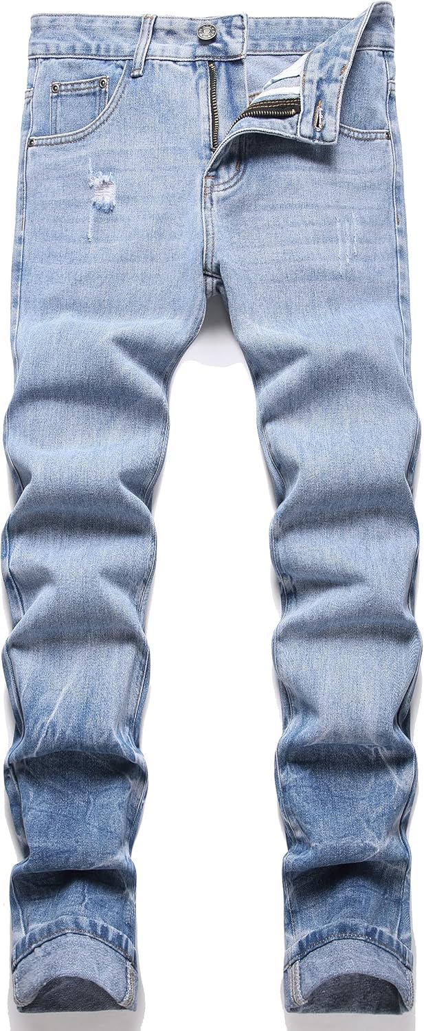 Men's Distressed Ripped Denim Jeans, Straight Cut, Vintage Style, 100% Cotton Comfort